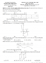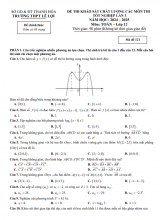 giới thiệu đến quý thầy, cô giáo và các em học sinh lớp 12 đề khảo sát chất lượng môn Toán 12 ôn thi THPT Quốc gia năm học 2024 – 2025 lần 1 cụm trường THPT Nguyễn Hiền và THPT Lê Hồng Phong, tỉnh Quảng Nam. Kỳ thi được diễn ra vào ngày 14 tháng 01 năm 2025. Đề thi có đáp án trắc nghiệm mã đề 101 102 103 104 105 106 107 108 109 110 111 112. Trích dẫn Đề khảo sát Toán 12 THPT 2025 lần 1 cụm THPT Nguyễn Hiền & Lê Hồng Phong – Quảng Nam : + Kì thi tốt nghiệp THPT năm 2025 dự kiến thi ba buổi. Ngày đầu thi chung Văn và Toán, buổi thứ ba tổ chức thi tất cả các môn còn lại theo đúng hai khung giờ. Bạn Hiền và bạn Hòa thi chung một phòng thi nhưng thuộc hai nhóm môn khác nhau. Bạn Hiền học nhóm môn(Sử; Anh; Lý; Hóa; Sinh; Tin) còn Bạn Hòa học nhóm môn(Sử; Anh; Địa; KT&PL; Công nghệ). Mỗi bạn chọn ngẫu nhiên theo thứ tự 2 môn trong nhóm môn mình học để thi. Xác suất để bạn Hiền và bạn Hòa thi buổi thứ ba trùng đúng một môn thi trong cùng một khung giờ bằng: a/b (tối giản). Tính a + b? + Lớp 12/3 Niên khóa 2012-2015 có 40 học sinh. Sau 5 năm ra trường(năm 2020) mỗi bạn góp 1.500.000đ và gửi vào ngân hàng với lãi suất 6,7%/năm. Biết rằng nếu không rút tiền ra khỏi ngân hàng thì cứ sau mỗi năm, số tiền lãi sẽ được nhập vào vốn ban đầu (hay gọi là lãi kép). Giả sử trong nhiều năm liên tiếp kể từ khi gửi tiền, lớp 12/3 không rút tiền ra và lãi suất không thay đổi. Hỏi đến năm nào lớp 12/3 có hơn 100 triệu đồng? + Trạm không lưu sân bay Đà nẵng xây dựng hệ tọa độ Oxyz (gốc O đặt tại Đà Nẵng) để theo dõi vị trí các chuyến bay. Lúc 6h Máy bay A xuất phát từ Đà Nẵng đến TPHCM theo tia OA lần lượt hợp với ba tia Ox; Oy; Oz các góc bằng nhau với vận tốc 800km/h. Mười phút sau Máy bay B đi Hà Nội theo tia OB hợp với ba tia Ox’; Oy’; Oz’ các góc bằng nhau với vận tốc 900km/h (hình vẽ minh họa). Tính khoảng cách (đơn vị km và làm tròn đến hàng đơn vị) giữa hai máy bay A và B lúc 6h30’.