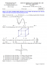giới thiệu đến quý thầy, cô giáo và các em học sinh lớp 12 đề khảo sát chất lượng lần 1 môn Toán 12 năm học 2024 – 2025 trường THPT Sào Nam, tỉnh Quảng Nam. Đề thi có đáp án mã đề 101 – 102. Trích dẫn Đề khảo sát lần 1 Toán 12 năm 2024 – 2025 trường THPT Sào Nam – Quảng Nam : + Chọn hệ trục Oxyz với (Oxy) là mặt đất. Hai khinh khí cầu cùng bay lên tại O. Sau nửa giờ bay, chiếc khinh khí cầu thứ nhất cách điểm xuất phát về phía Đông 11 (km) và về phía Nam 8 (km), đồng thời cách mặt đất 1,3 (km). Chiếc khinh khí cầu thứ hai cách điểm xuất phát về phía Bắc 8 (km) và về phía Tây 8 (km), đồng thời cách mặt đất 900 (m). Xác định khoảng cách (km) giữa hai chiếc khinh khí cầu sau một giờ bay, biết rằng mỗi khinh khí cầu bay với vận tốc và phương không đổi (kết quả làm tròn chính xác đến hàng phần chục). + Xét một chất điểm M chuyển động trên đường nằm ngang chọn O làm gốc, chiều dương từ trái sang phải. Chuyển động của M được cho bởi công thức S(t) = t3 − 3t2 − 1, với t (giây), t ≥ 0 là khoảng thời gian tính từ lúc chất điểm bắt đầu chuyển động.Gọi OM là khoảng cách từ M đến O tính bằng (mét). a) Tại thời điểm t = 0 thì OM = 1m. b) Chất điểm chuyển động với vận tốc được xác định bởi biểu thức v = 3t2 − 6t + 1 (m/s). c) Trong khoảng thời gian 2 giây đầu tiên kể từ lúc bắt đầu chuyển động, chất điểm chuyển động sang trái. d) Đến giấy thứ 3 giây kể từ lúc bắt đầu chuyển động, khoảng cách lớn nhất của OM là 5m. + Công ty sữa cần làm làm các lon đựng sữa hình trụ có thể tích 800 cm3 (lon sữa có nắp và bỏ qua việc gấp mí). Để chi phí vật liệu (thiết) làm hộp sữa là nhỏ nhất, cần thiết kế hộp sữa có bán kính bao nhiêu cm? (chính xác đến hàng phần trăm).